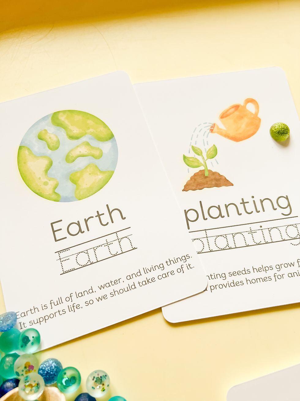 Introducing our exclusive flashcards, designed and printed by us here at Everyday Messyplay. Printed on high-quality 280gsm round-edged cards, each card features a beautiful watercolour graphic, a key word, a writing practice area and a fun fact. Our flashcards come in packs of 6, making them the perfect addition to your learning through play activities at home or in an early years setting. What's even better, is these are UKCA tested.